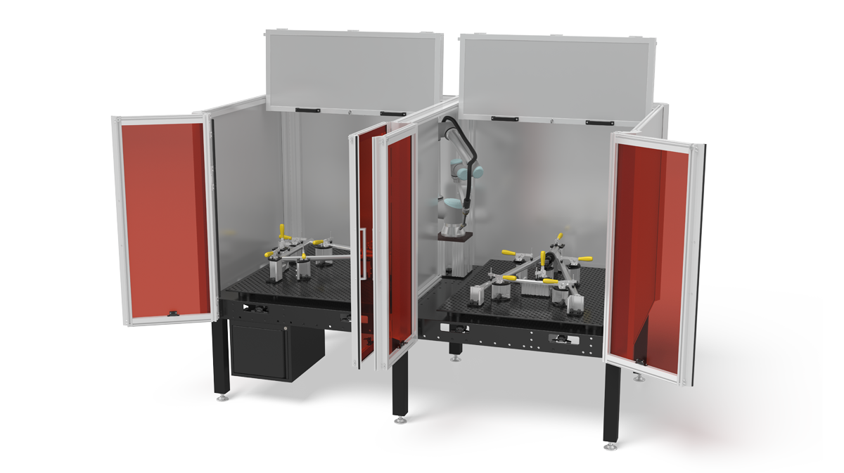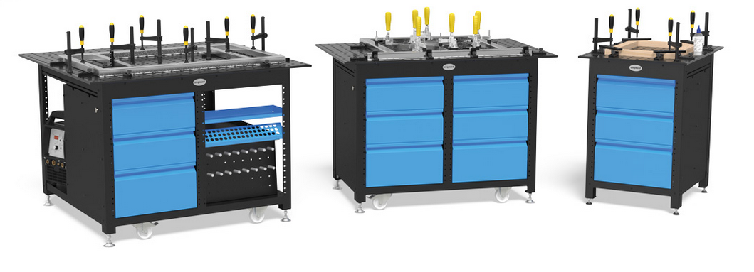 Mit dem Schweiß- und Spanntischsytem lassen sich mittels eines durchdachten Baukastensystems mit einer großen Vielfalt von kompatiblen Spannsystemteilen, binnen kürzester Zeit, komplexe Anwendungs- und Kombinationsmöglichkeiten realisieren.